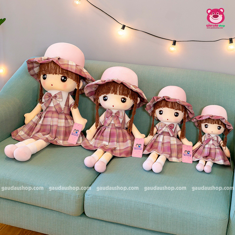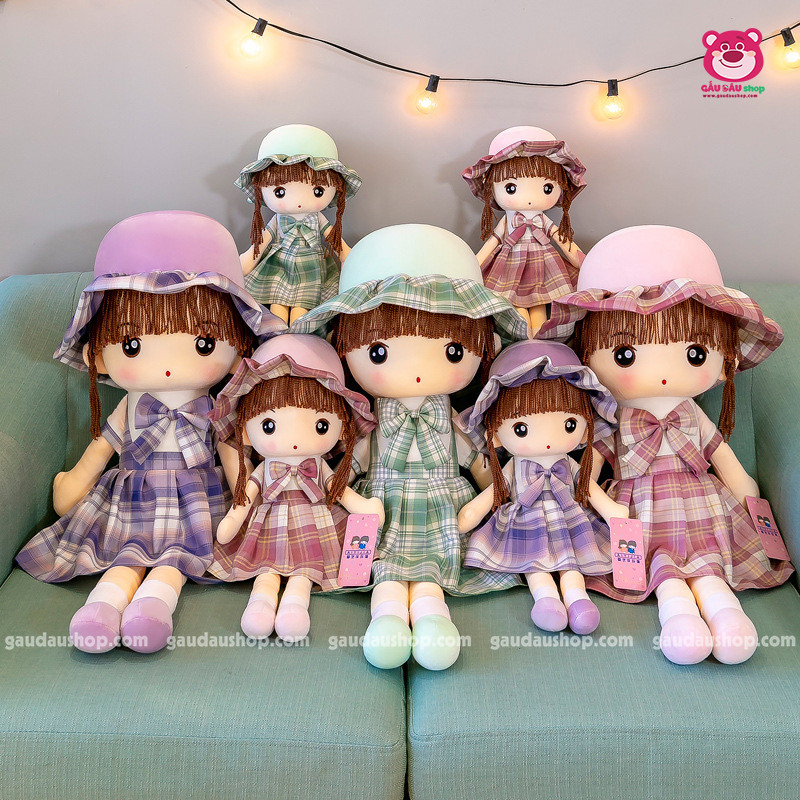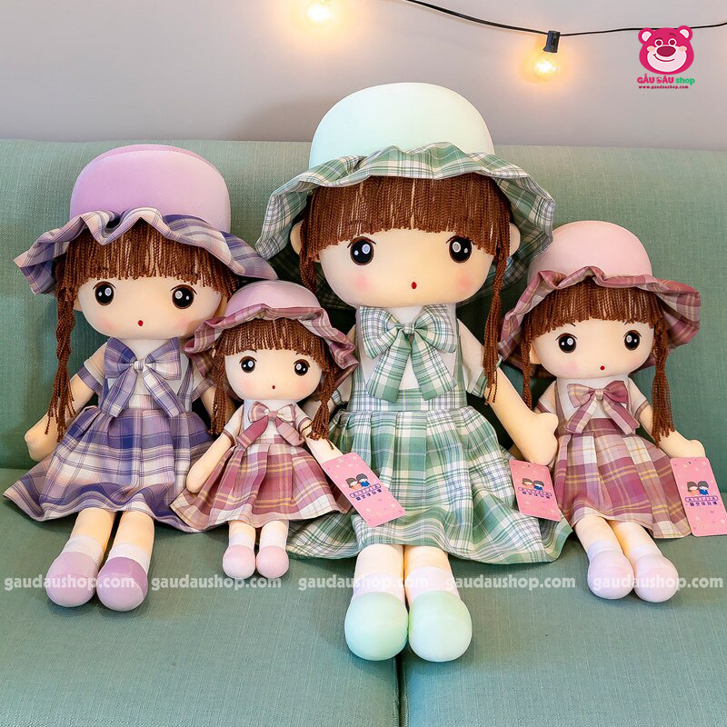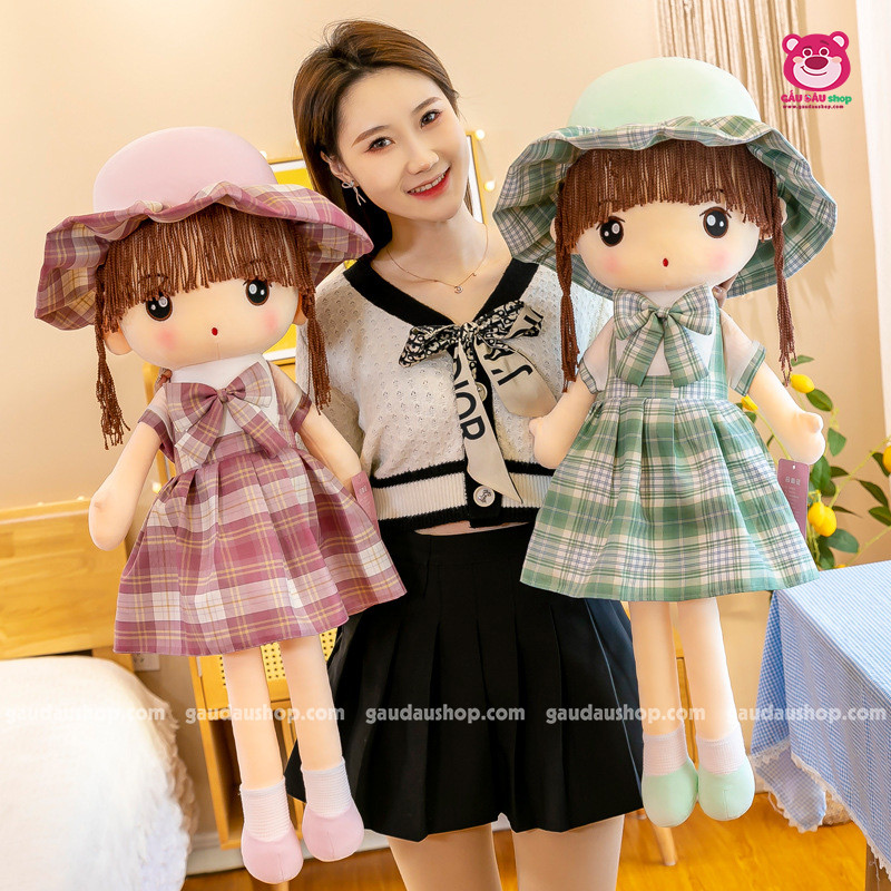 Búp bê váy kẻ, được nhồi bằng bông gòn 100%, ôm êm ái, mềm mại. Hàng nhập khẩu siêu xinh xịn xò, mềm mịn.